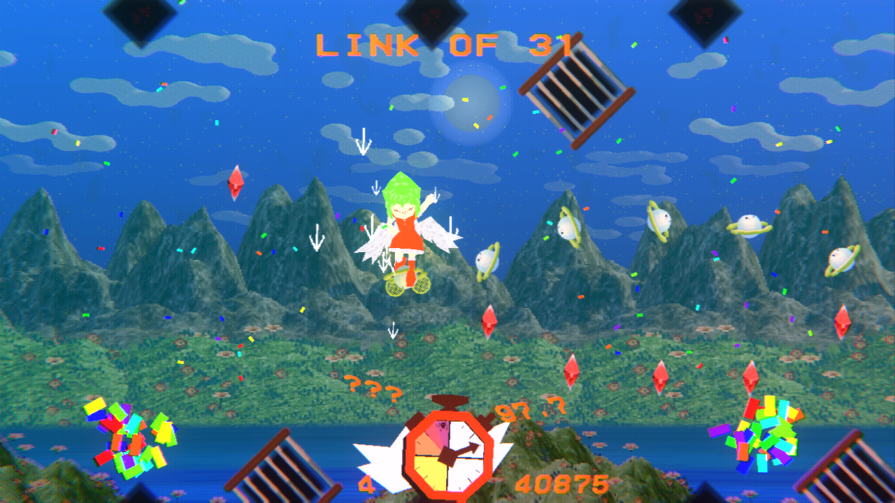 ...and get enough of them to pass each track of the level. But you notice that some tenrins or items are too high, right? That's when YOU FLY!!